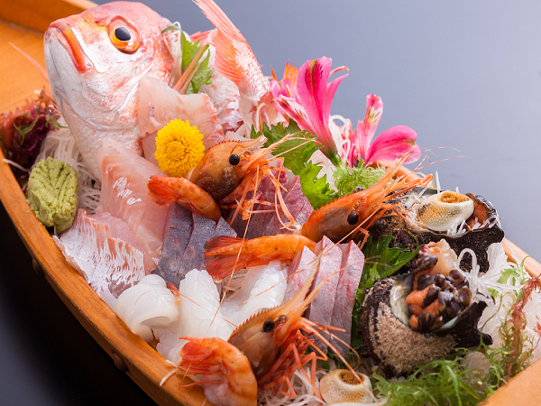 イセエビ半身又はアワビ踊焼き・新鮮魚介の舟盛
